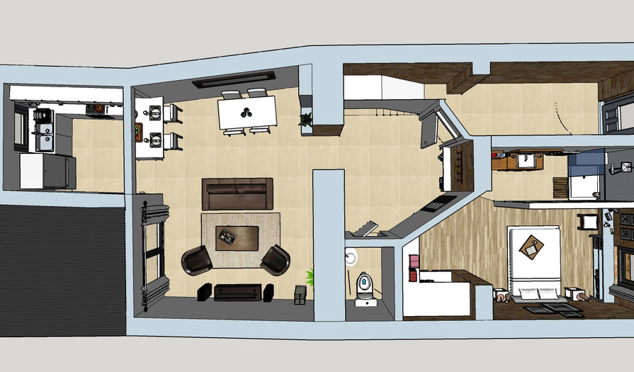 Projet d'aménagement d'un appartement en rez-de-chaussée d'une maison de ville.
